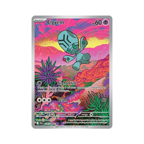A Secret Rare Elgyem from the SV: Black Bolt set, featuring premium artwork and strong collector appeal for Scarlet & Violet collectors and Psychic-type fans.