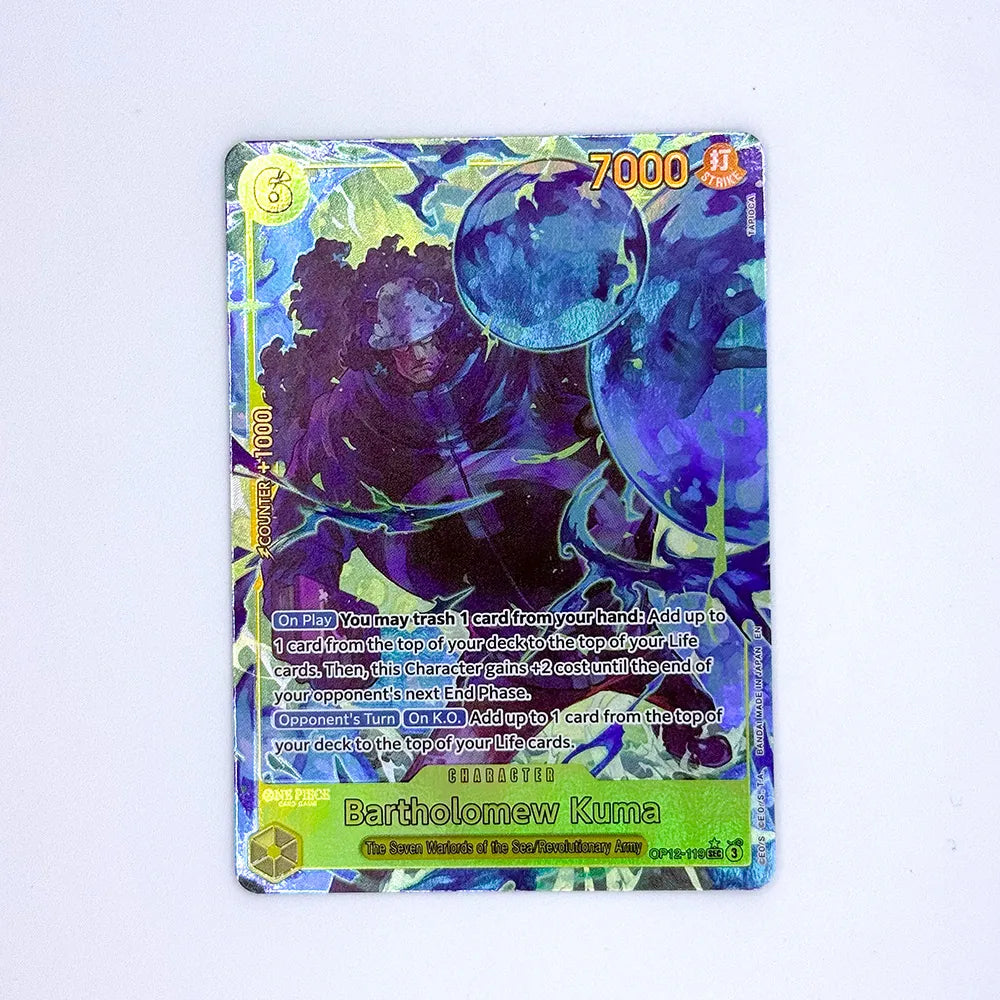 The Bartholomew Kuma Alternate Art from One Piece Card Game: OP12 – Legacy of the Master is a striking, story-driven chase card that highlights Kuma’s complex legacy and emotional depth.